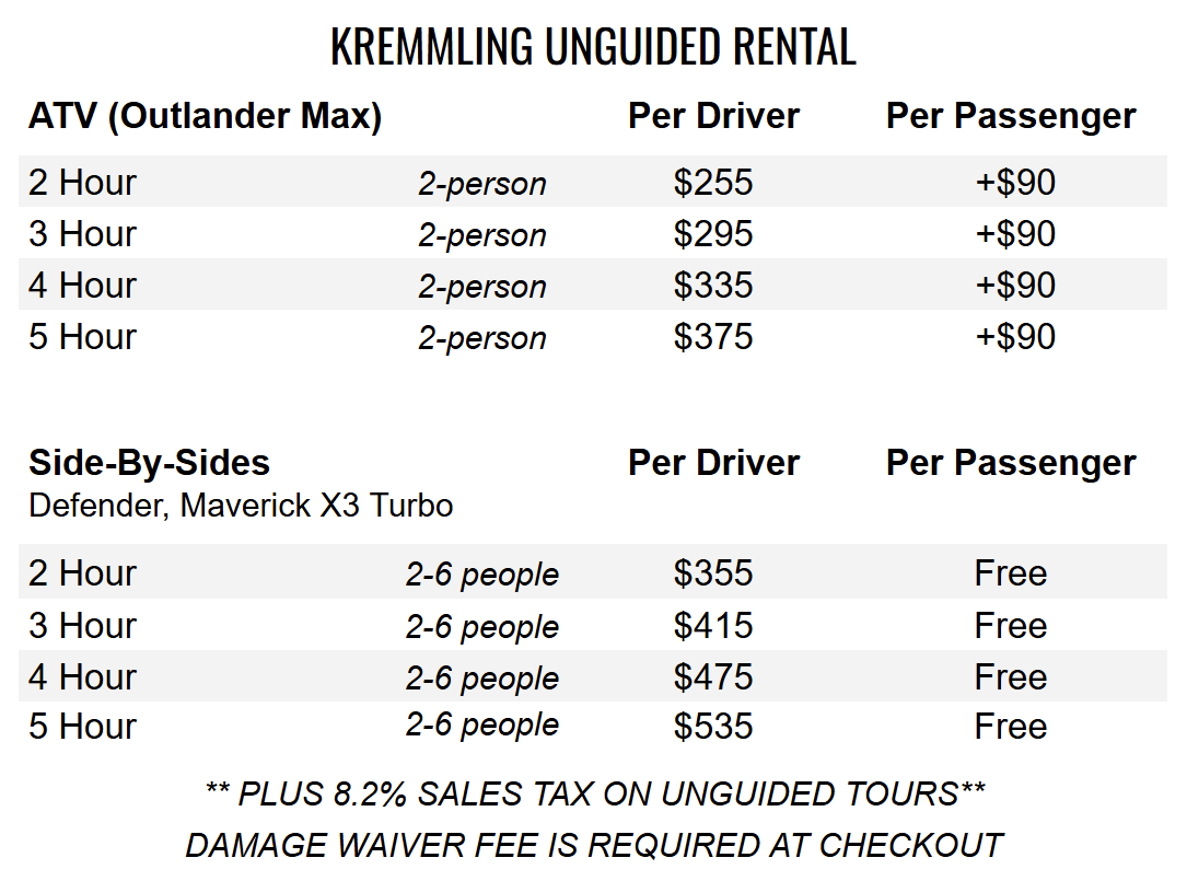 You will drive your ATV or Side-by-side right from our outpost where you meet us and park your car. Unlike our competitors, you don’t need to pay for transportation time.